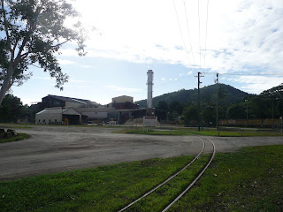 Proserpine, Tully and now Mossman. We are discovering that small 'cane towns' have much in common. A bustling main street, the ubiquitous cane train railway lines, often either crossing or travelling along main streets of the towns, cane fields abutting footpaths, and, dominating the skyline, the imperious stacks of the sugar mill which, between June and November continuously belch smoke from the boiler fires and steam from the driers. And for those lucky enough to be downwind, the added bonus of airborne soot and the all pervading, sickly 'molasses' smell.